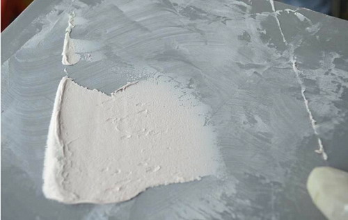 (7)洞眼縫隙之處要用刮刀尖將原子灰擠壓填滿,但一次不宜刮涂太多太厚,防止干不透。