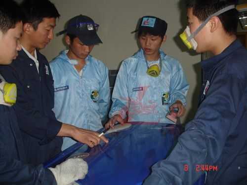 6月8日青島城陽職校、珠海理工學校、深圳市第二高職的國賽選手在龍神培訓中心,進行賽前汽車噴涂演練,演練內容主要包括前處理、調漆、噴面漆等。現階段著重加強選手動手能力的培訓,使選手在技能操作的水平上符合大賽規范要求,嚴格把握操作要領。在龍神專業老師的指導下綜合細化訓練,針對選手每一項、每一個環節中做得不夠理想之處進行重點訓練,并結合模擬大賽來訓練選手的臨戰心理,盡可能使選手在大賽中不要出現過度緊張狀況。
