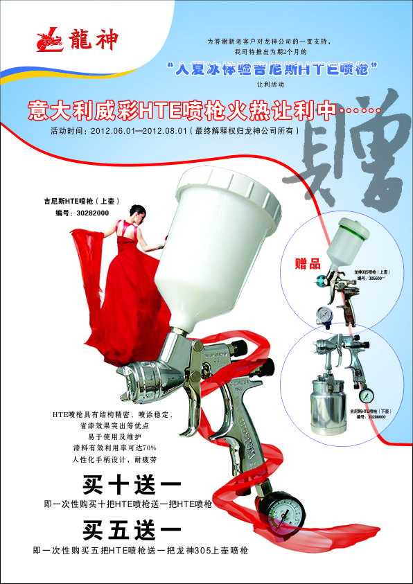 2、買五把HTE噴槍送一把龍神306噴槍(編號(hào):3062001-002)