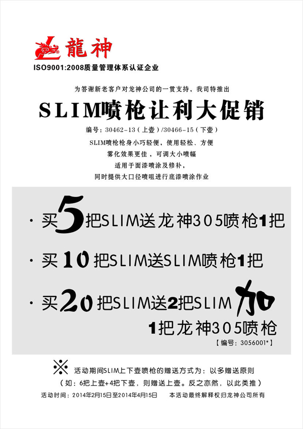 SLIM噴槍2014年2月份促銷方案